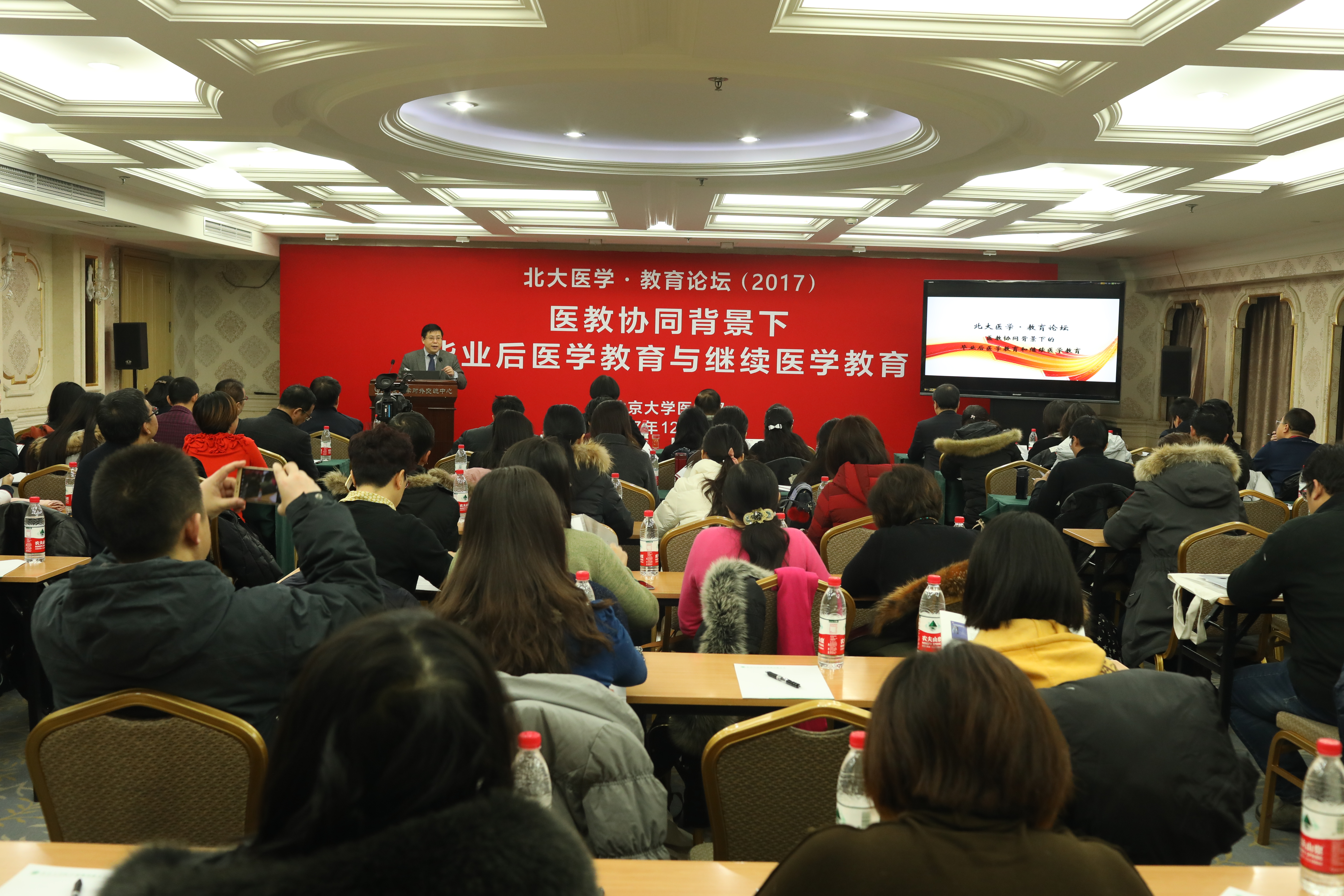 医教协同推进医学教育改革与发展,加强医学人才培养,是提高医疗卫生服务水平的基础工程,是深化医药卫生体制改革的重要任务,是推进健康中国建设的重要保障。为深入贯彻落实《“健康中国2030”规划纲要》和《国务院办公厅关于深化医教协同进一步推进医学教育改革与发展意见》,进一步加强医学人才培养,加强医学院校之间交流与合作,2017年12月14日上午,北大医学·教育论坛分论坛三“医教协同背景下的毕业后医学教育和继续医学教育”在北京大学英杰交流中心第二会议室召开。医学部副主任段丽萍、继续教育处处长姜辉,医学部各附属医院、教学医院、以及来自全国37家医学院校的毕业后医学教育和继续医学教育管理人员80多人参加了论坛。国家卫生计生委科教司教育处副处长余秋蓉、上海市卫生计生委科教处处长张勘、北京大学医学部继续教育处处长姜辉、北京大学第一医院教学院长李海潮、北京大学继续教育学院院长张海澄哈尔滨医科大学继续教育学院院长刘振华和中国医科大学继续教育学院院长佟赤应邀发言。分论坛由姜辉处长和张海澄院长分别主持。