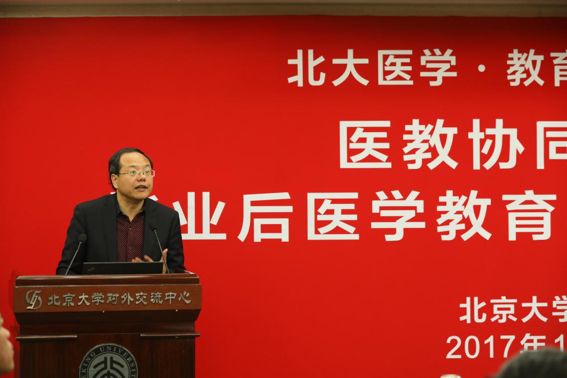 医教协同推进医学教育改革与发展,加强医学人才培养,是提高医疗卫生服务水平的基础工程,是深化医药卫生体制改革的重要任务,是推进健康中国建设的重要保障。为深入贯彻落实《“健康中国2030”规划纲要》和《国务院办公厅关于深化医教协同进一步推进医学教育改革与发展意见》,进一步加强医学人才培养,加强医学院校之间交流与合作,2017年12月14日上午,北大医学·教育论坛分论坛三“医教协同背景下的毕业后医学教育和继续医学教育”在北京大学英杰交流中心第二会议室召开。医学部副主任段丽萍、继续教育处处长姜辉,医学部各附属医院、教学医院、以及来自全国37家医学院校的毕业后医学教育和继续医学教育管理人员80多人参加了论坛。国家卫生计生委科教司教育处副处长余秋蓉、上海市卫生计生委科教处处长张勘、北京大学医学部继续教育处处长姜辉、北京大学第一医院教学院长李海潮、北京大学继续教育学院院长张海澄哈尔滨医科大学继续教育学院院长刘振华和中国医科大学继续教育学院院长佟赤应邀发言。分论坛由姜辉处长和张海澄院长分别主持。